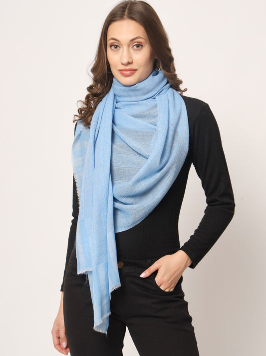 Pure Fine Wool Woolen Stole for Women in Striped weaving | Blue