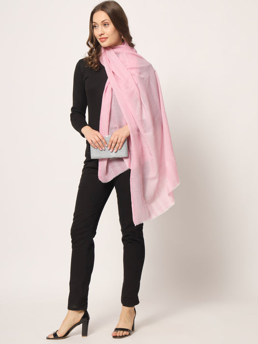 Pure Fine Wool Woolen Stole for Women in Striped weaving | Pink