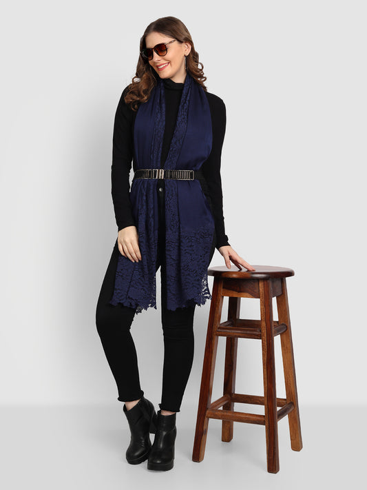 Pure Fine Wool Woolen Stole for Women with Lace Endings | Blue