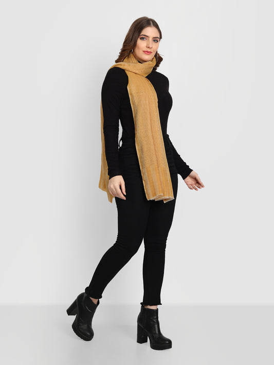 Pure Fine Wool Woolen Stole for Women in Striped Weaving | Mustard