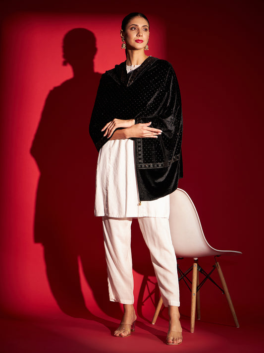 Soft Velvet Stole with Crystal Work Embellishment | Black