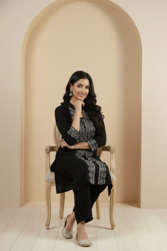 Sozni Floral Embroidery Kashmiri Shawl | Black