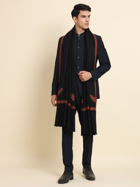 Traditional Kashmiri Embroidered Lohi for Men | Black