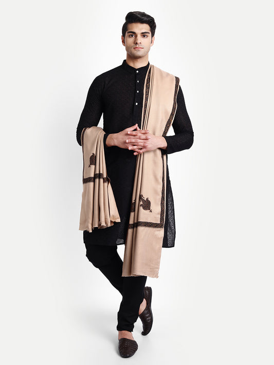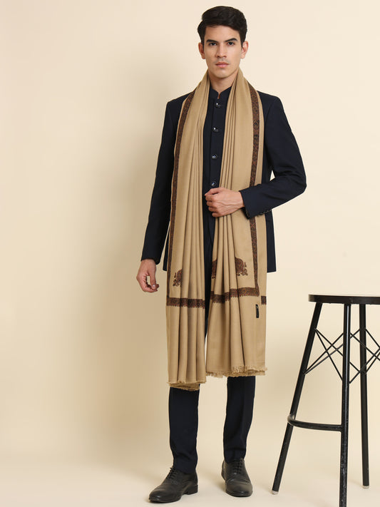 Traditional Kani Weave Pure Wool Shawl for Men | Brown