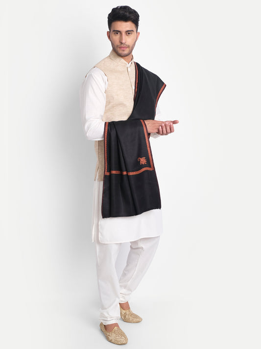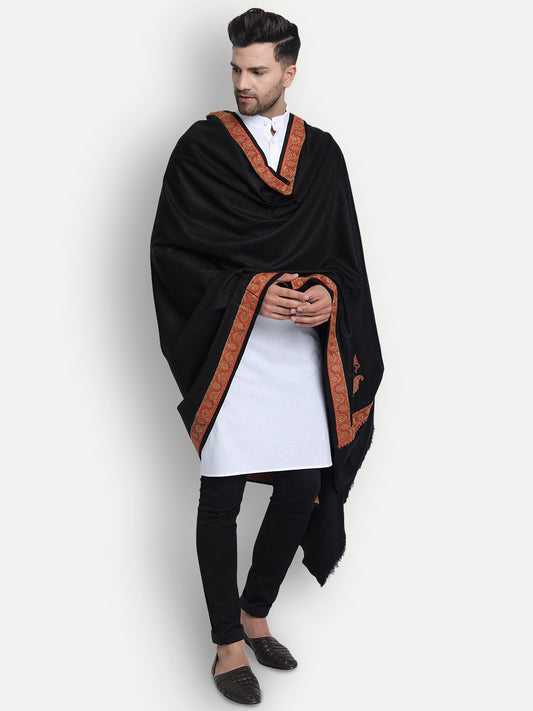 Traditional Kani Weave Pure Wool Shawl for Men | Black