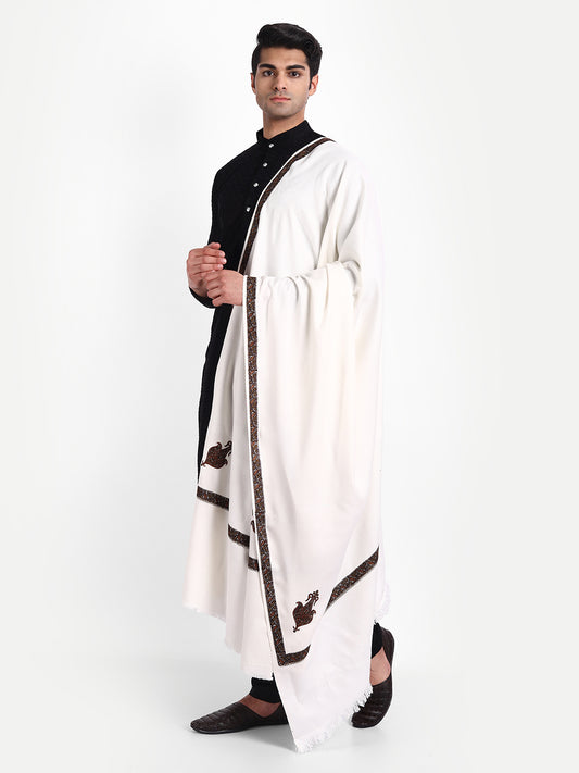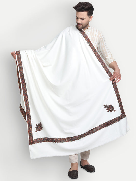 Traditional Shawl with Fine Needle Kashmiri Border | Cream