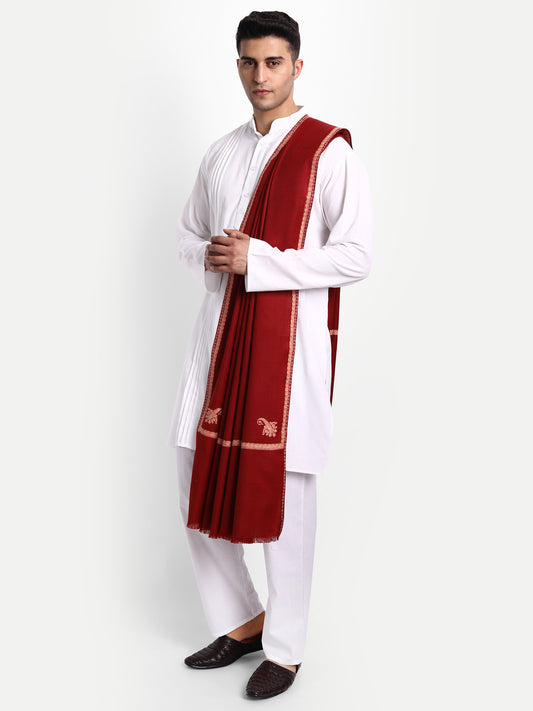 Traditional Kani Weave Pure Wool Shawl for Men | Maroon