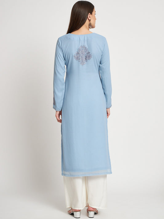 Unstitched Kurta in Faux Georgette with Aari Embroidery (without lining) | Sky Blue