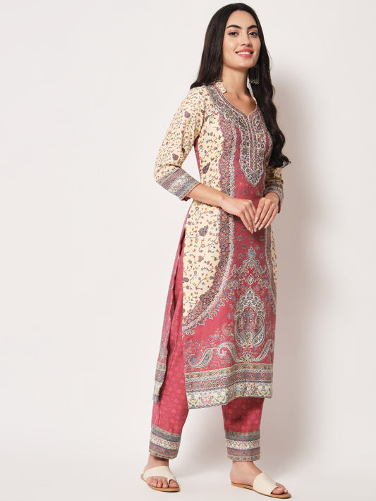 Unstitched Printed Design Kalamkari Handwork Dress Material | Pink