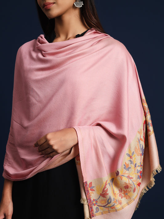 Floral Kani Pattern on Border Soft Modal Stole for Women | Pink