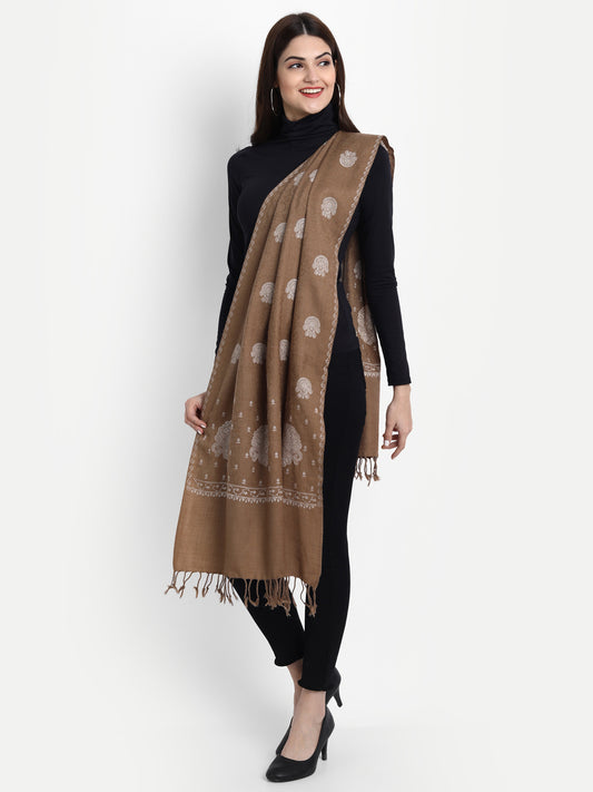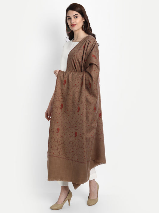 Fine Sozni Embroidery Kashmiri Wool Stole | Brown