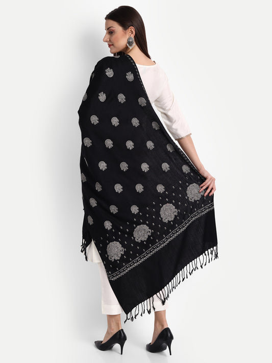 Fine Sozni Embroidery Kashmiri Wool Stole | Black