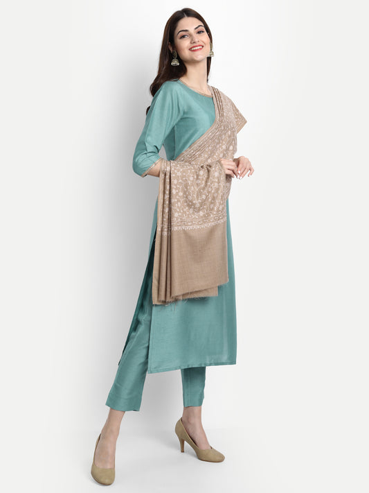 Fine Sozni Embroidery Kashmiri Wool Stole | Beige