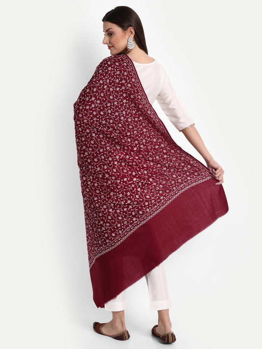 Fine Sozni Jaal Embroidery Kashmiri Wool Shawl | Maroon