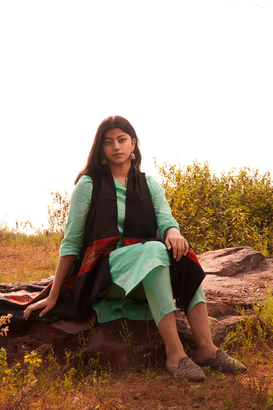 Women's Woven Cape Shrug in Himalayan Stripes | Black