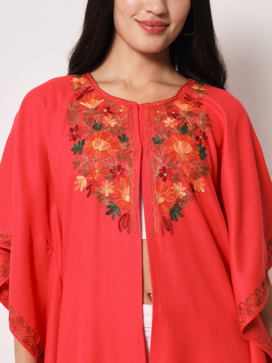 Women's Woolen Cape Shrug with Kashmiri Embroidery | Pink