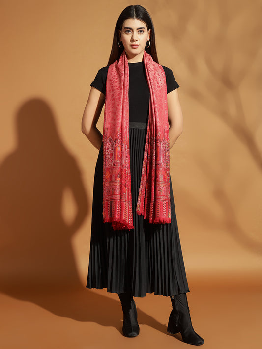 Kani Weave Floral Jaal Pattern Shawl For Women | Maroon