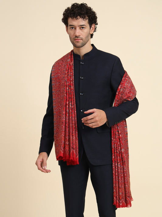 Kani Weave Woven Shawl for Men in Cutting with Floral Patterns | Maroon