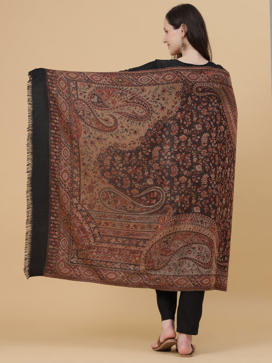 Jacquard Woollen Woven Shawl for Women in Jamawar Patterns | Black