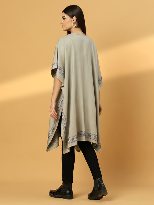 Woolen Kashmiri Poncho with Jaal Embroidery and Silk Lining | Blue