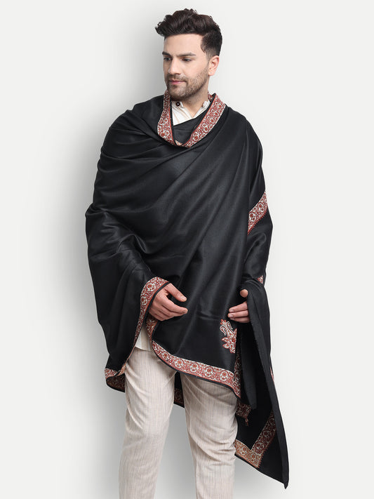 Fine Sozni Embroidery Daur Kashmiri Wool Shawl | Black