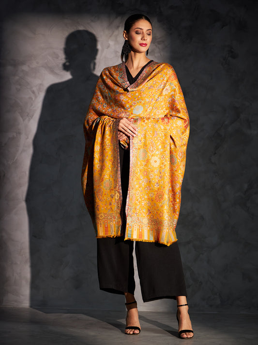 Kani Weave Woven Shawl for Women in Floral Patterns | Mustard