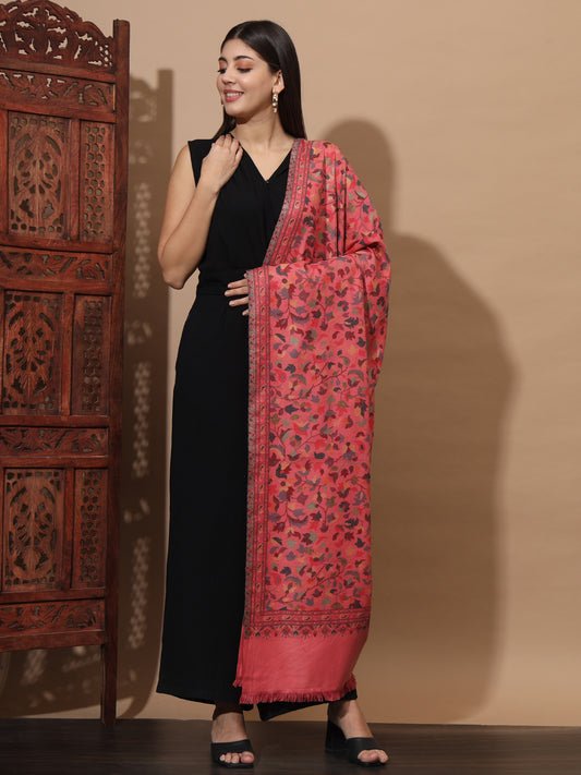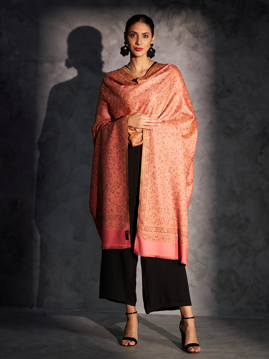 Kani Weave Woven Floral Shawl for Women in Paisley Jaal Patterns | Pink