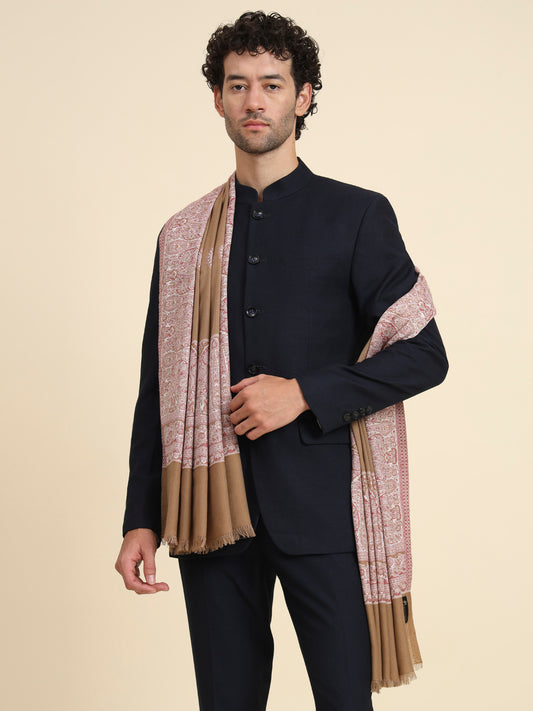 Woven Shawl for Men with Daur Border in Woollen Kashmiri Design | Brown