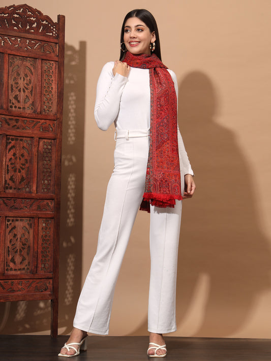 Kani Weave Woven Stole for Women in Paisley Jaal Patterns | Maroon
