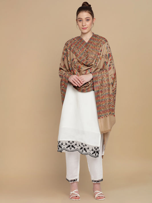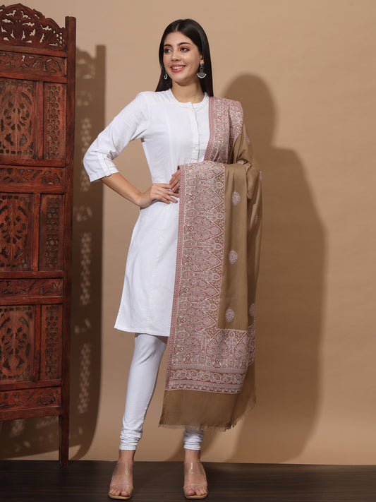 Woven Shawl for Women with Daur Border in Woollen Kashmiri Design | Brown