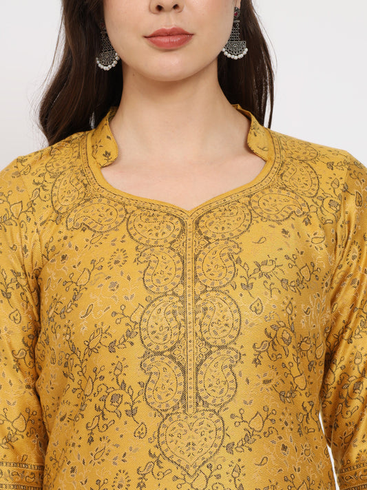 Unstitched Kani Woven Design Suit Dress Material | Mustard