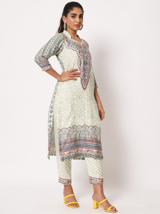 Unstitched Printed Design Kalamkari Handwork Dress Material | Pista