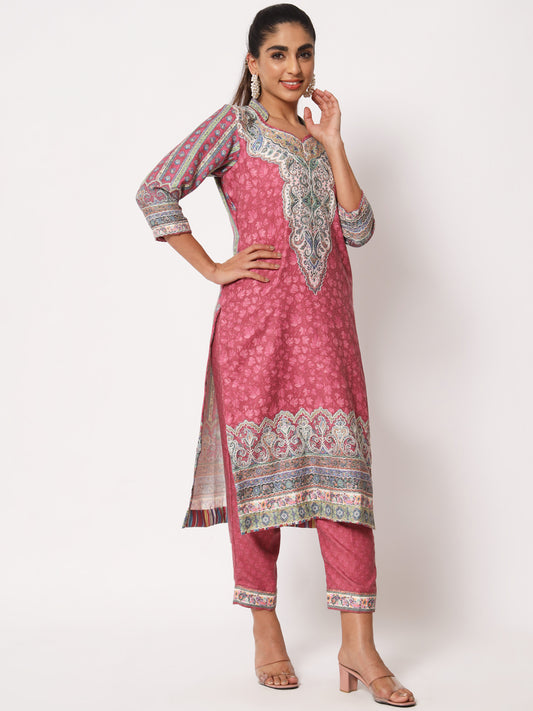 Unstitched Printed Design Kalamkari Handwork Dress Material | Pink