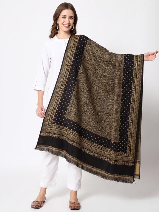 Woven Design Reversible Woollen Shawl for Women | Brown