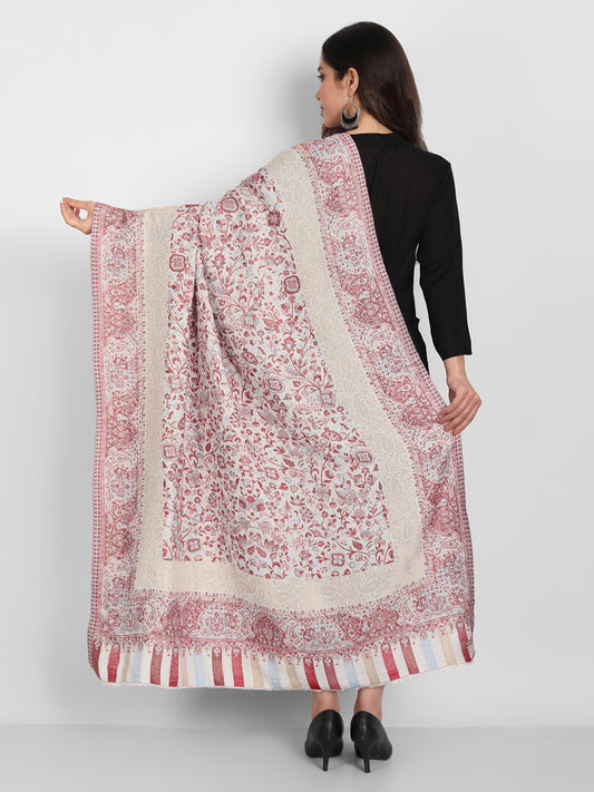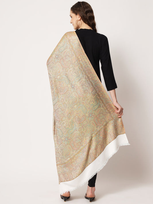 Kani Woven Shawl for Women in Paisley Design Weaving | White