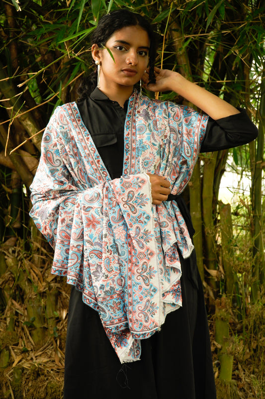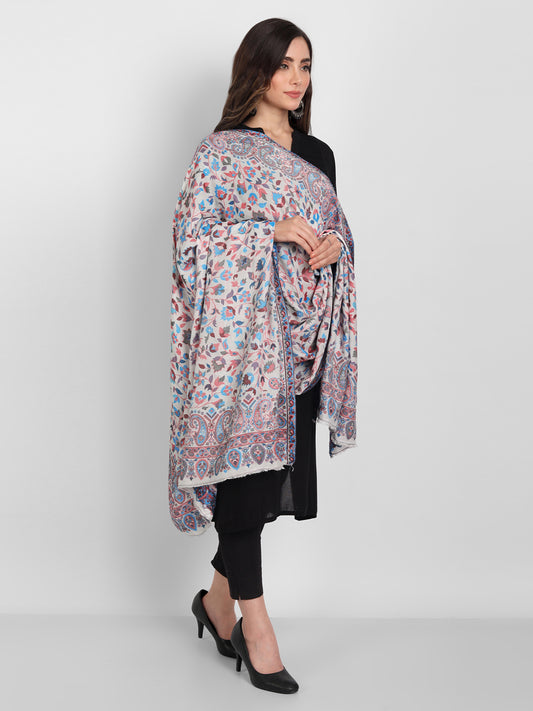 Kashmiri Aari Embroidery Woollen Stole | Off White