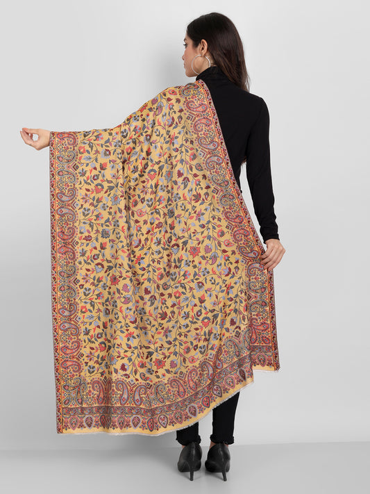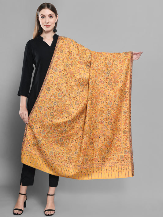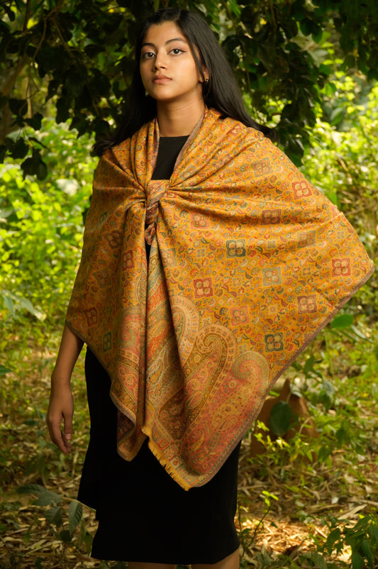 Kashmiri Kani Stole for Women in Paisley Jacquard Weaving | Mustard