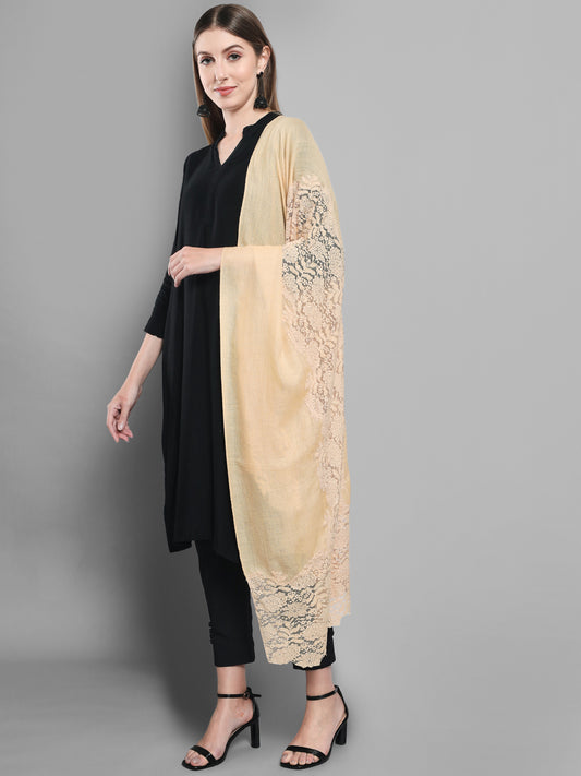 Pure Fine Wool Woolen Stole for Women with Lace Endings | Cream