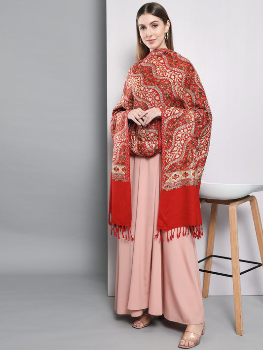 Kashmiri Aari Embroidery Woollen Shawl | Maroon