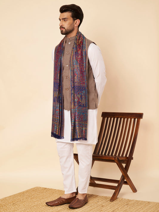 Kani Darbar Weave Soft Woolen Stole for Men | Blue