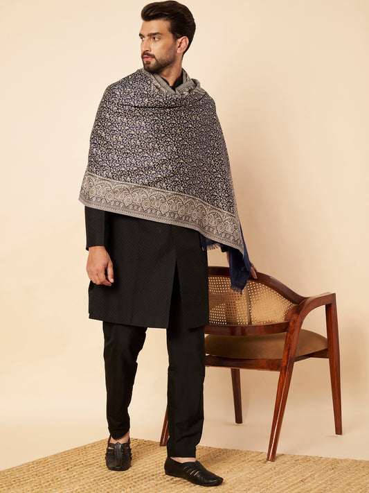 Kani Floral Weave Soft Woolen Stole for Men | Black
