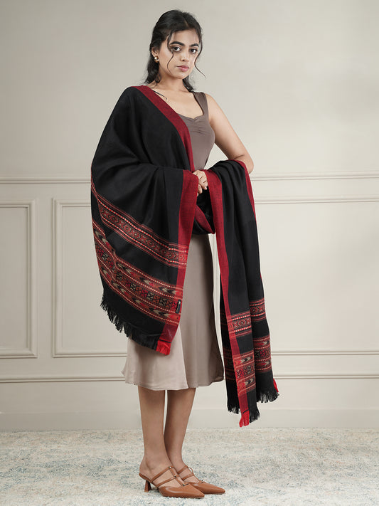 Men's Traditional Kullu Weave Himalayan Shawl | Black