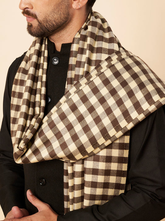Men's Woollen Lohi Shawl | Brown White Check