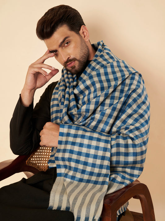 Men's Woollen Lohi Shawl | Blue Grey Check