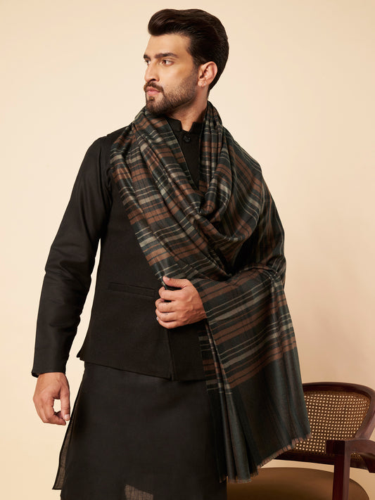 Men's Woollen Lohi Shawl | Brown Stripe Check