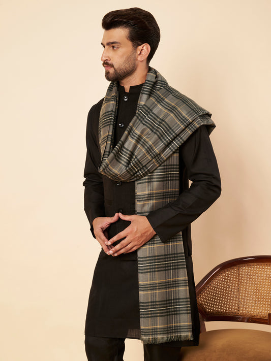 Men's Woollen Lohi Shawl | Grey Stripe Check