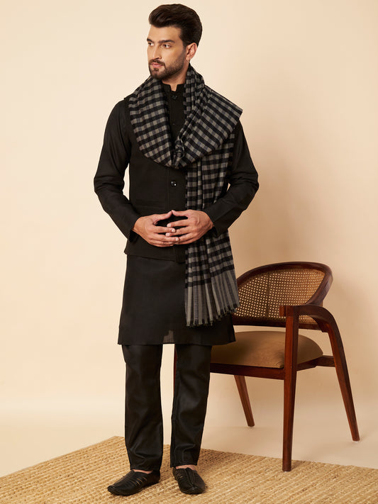 Men's Woollen Lohi Shawl | Black Grey Check