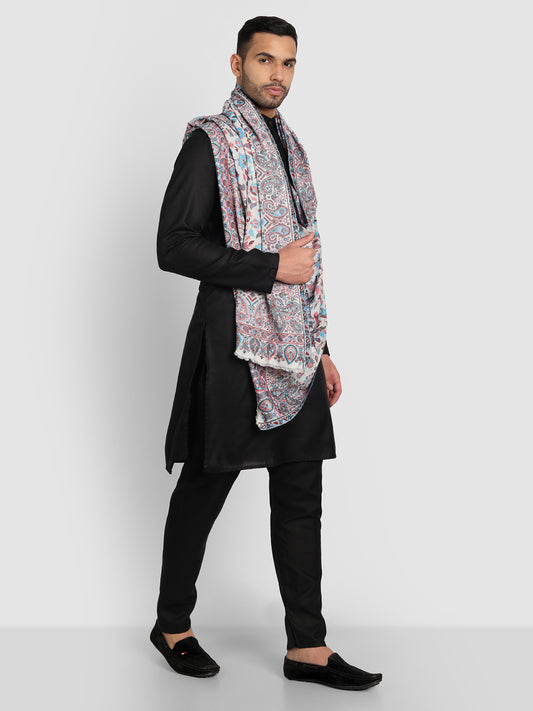 Kani Weave Woven Shawl for Men in Paisley Zari Patterns | Blue