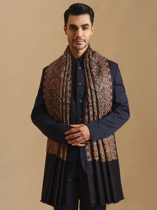 Kani Weave Woven Shawl for Men in Royal Mughal Patterns | Black