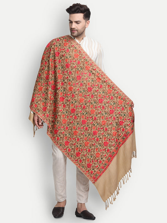 Woollen Pashmina Feel Stole in Silk Embroidery for Men | Brown